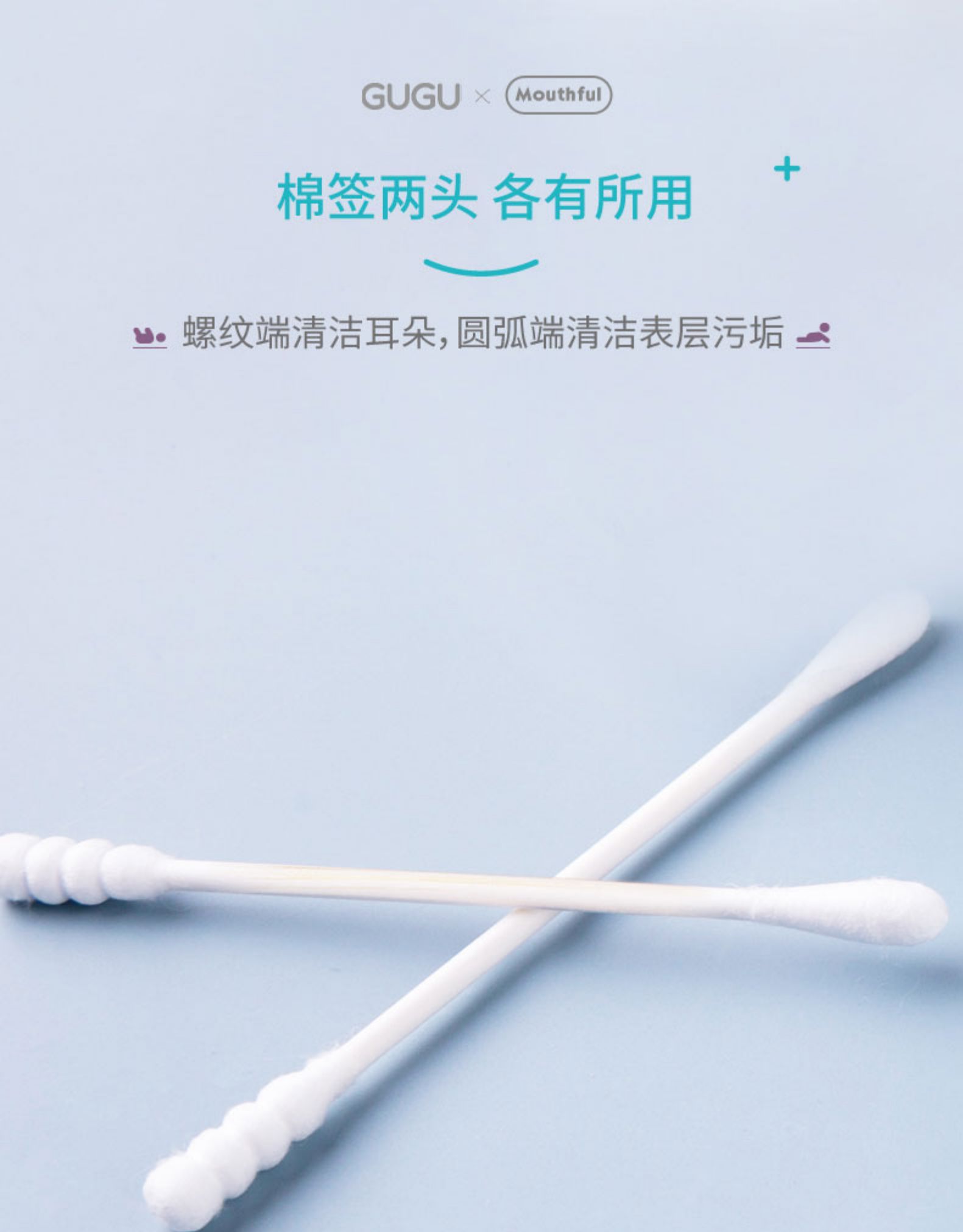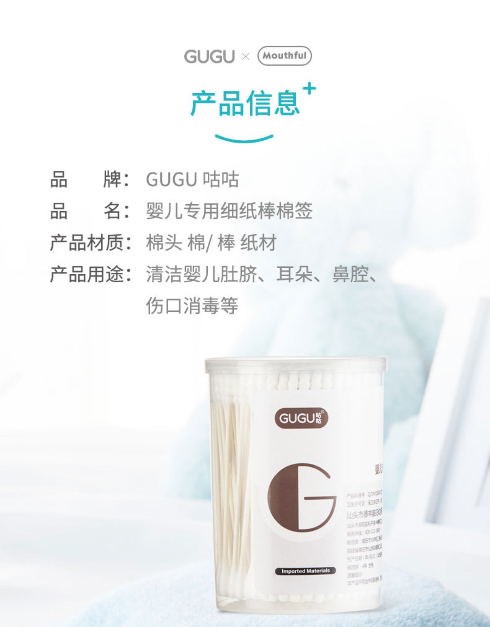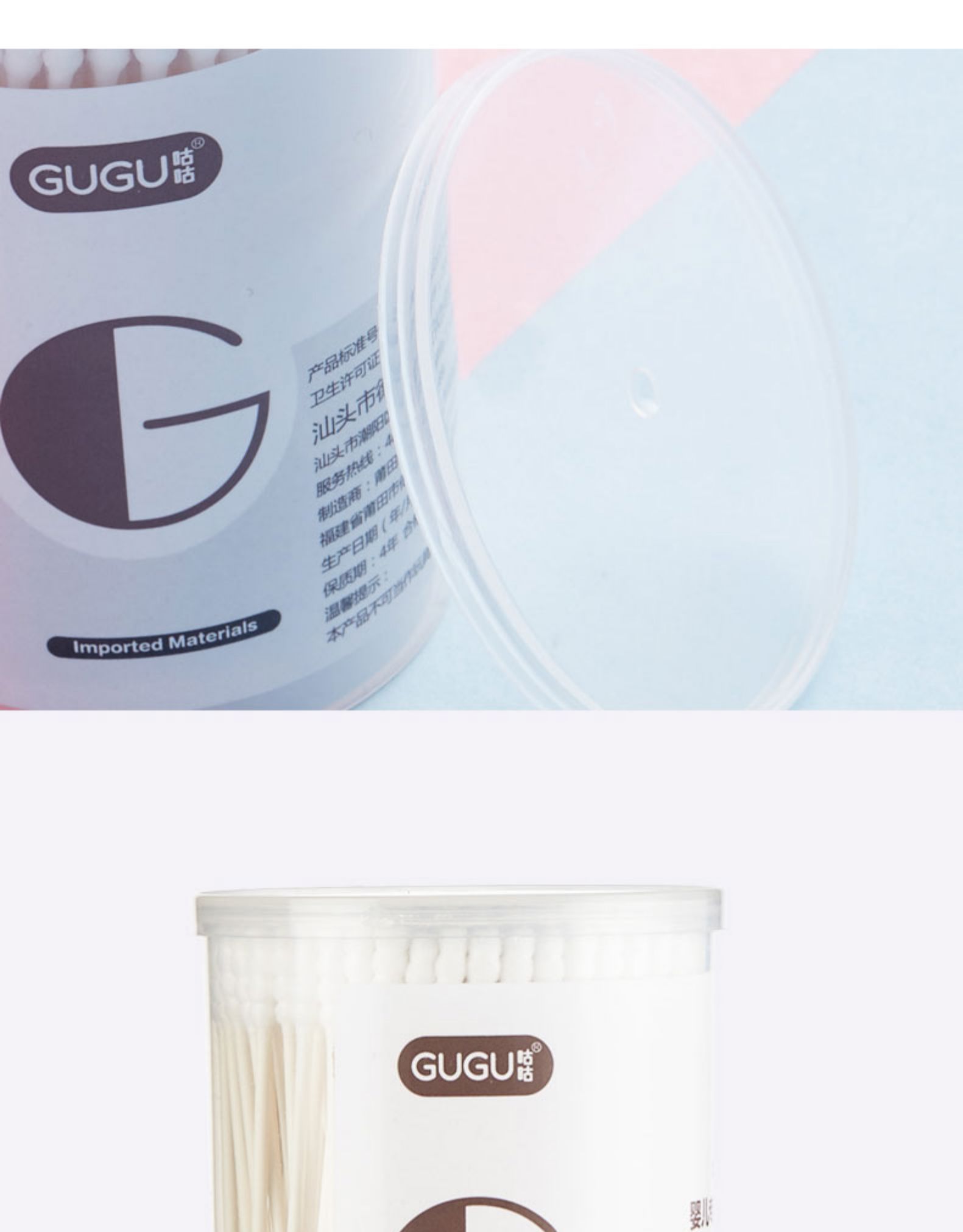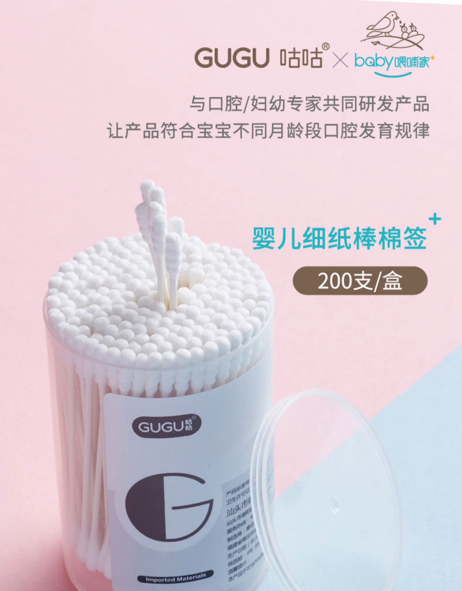 品牌名稱:咕咕 型 號:GI112 品名:嬰兒專用細桿紙棒棉簽(200支筒裝)
